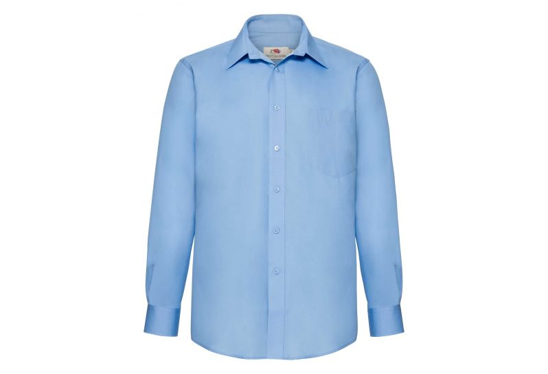 Fruit of the Loom, Poplin Shirt, muška poslovna košulja dugih rukava, napravljena od 55% pamuka i 45% poliestera, sa dugmićima u boji košulje i adekvatnom kragnom u boji košulje. Vrlo je laka za održavanje i ne gužva se.
